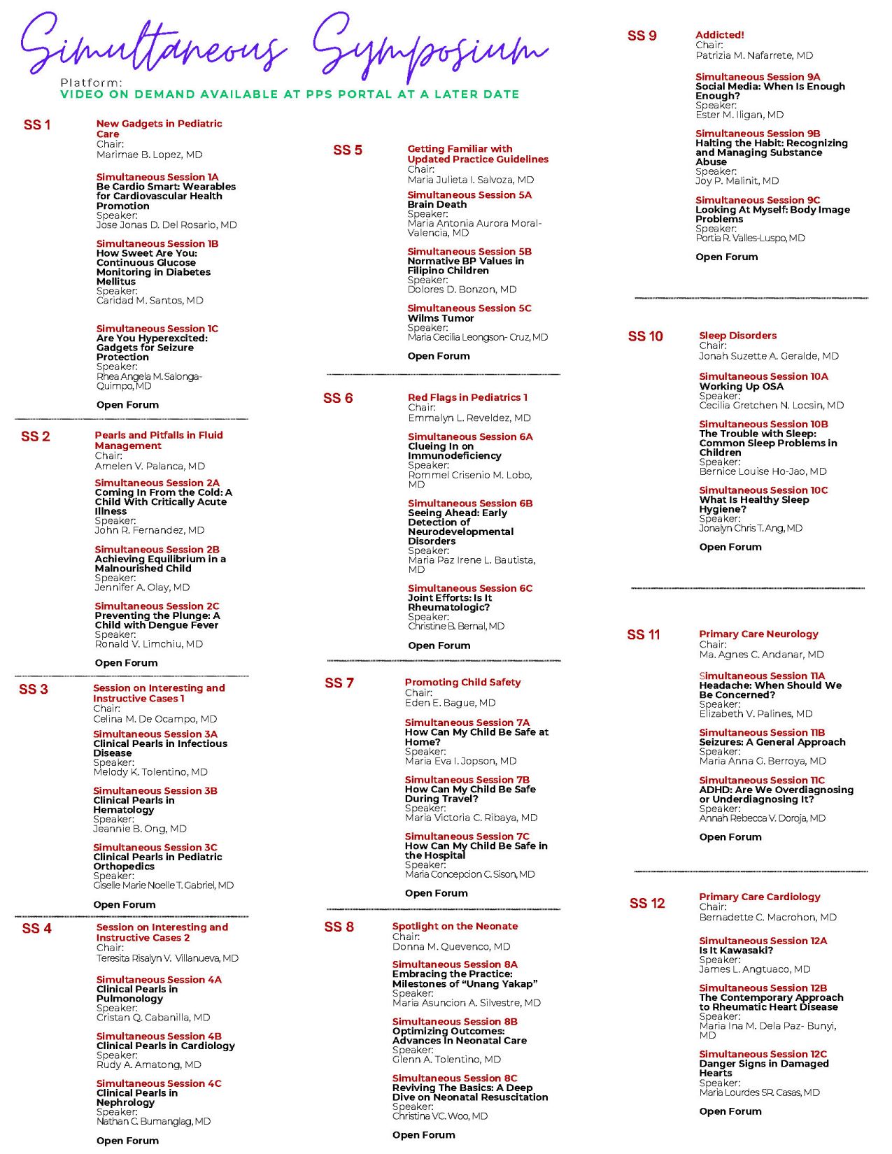 Simultaneous Sessions scheduled for the afternoons are to be released as Video on Demand (VOD) at a later date. Please watch for the advisory.
