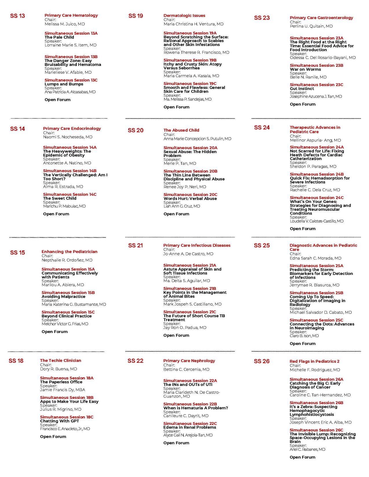 The Chairman of the Department can internally assign the topics to the 4 institutional representatives of their hospital then submit to the Pre-Convention Registration Form.