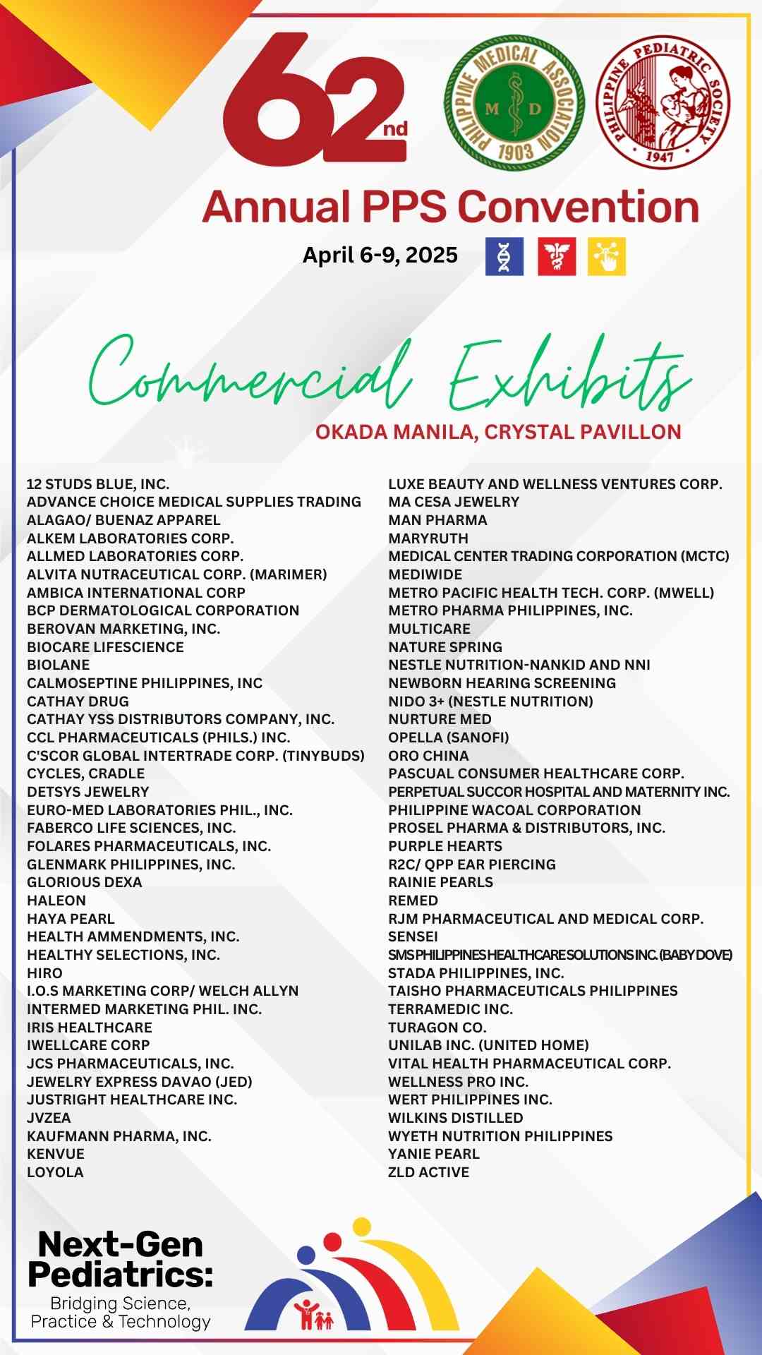 YES. You may visit the booth exhibits at Okada or Conrad whether you are F2F or live streaming. If you opted to attend via PPS Portal, you may visit the commercial booths at your most convenient time from 8:00AM to 5:00 PM; Please make sure you have registered and claimed your Convention ID kit at the designated registration counters for the day.